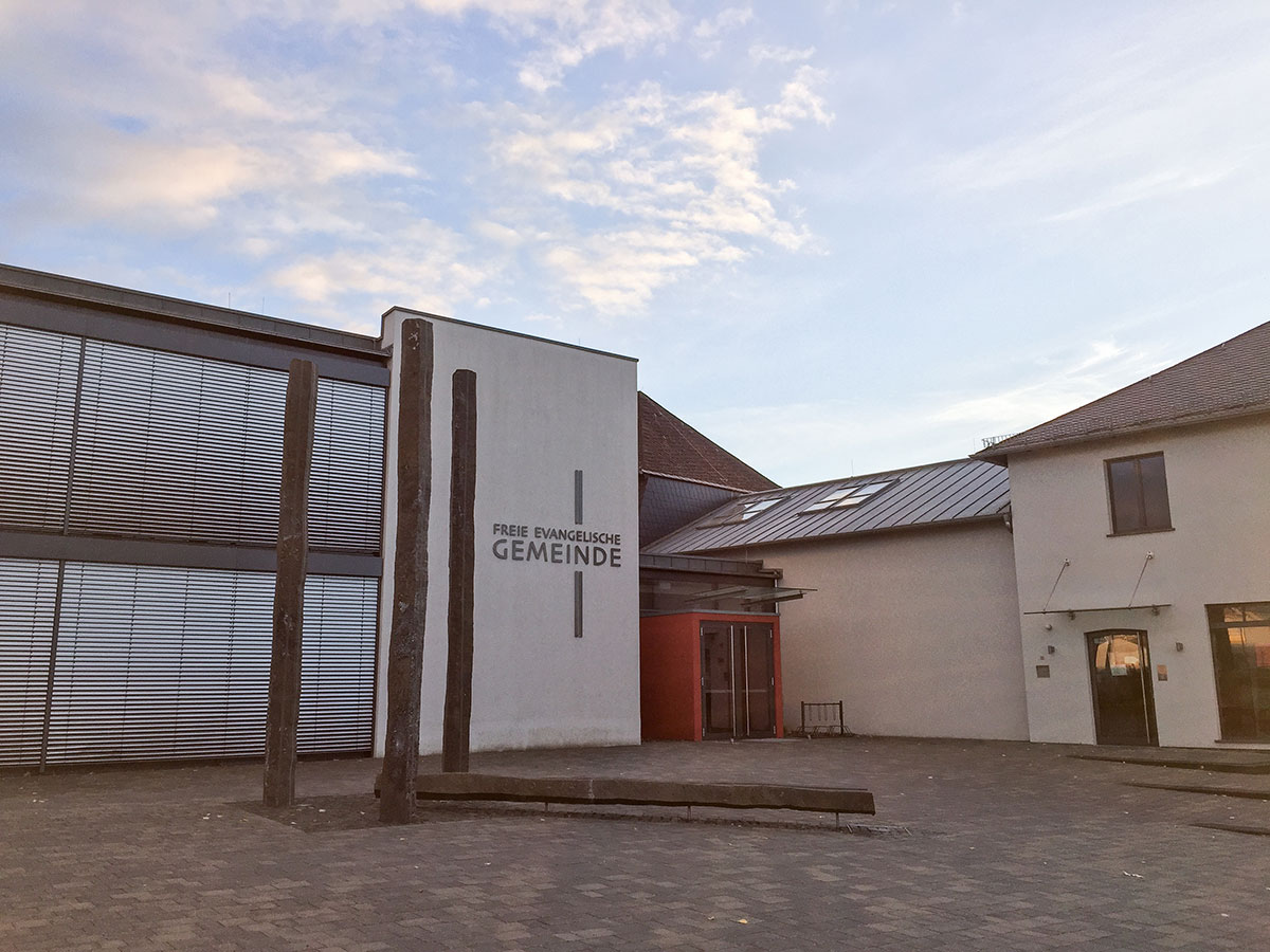 Diese drei Stelen stehen für die Dreieinigkeit Gottes, der sich dem Menschen in der Bibel als Gott Vater, Gott Sohn und Gott Heiliger Geist vorstellt. Das zeitlose Material des Basaltsteins und die bemerkenswerte Höhe der Objekte sollen außerdem Gottes Allgegenwart und Größe zum Ausdruck bringen. Die vierte liegende Säule verkörpert den Menschen, der zwar gestürzt, aber durch Jesus Christus wieder aufgehoben und neu gesegnet ist. Das Ur-Element Wasser, das aus der Mitte des Brunnens hervortritt und dem Besucher entgegenfließt, ist ein Zeichen für das Leben und die Liebe Gottes. Von Gott her strömt Lebensenergie zu den Menschen, die ohne dieses lebendige Wasser verdursten würden. Von Gott kommt alles her. Zu Gott führt alles hin. Das Thema dieser Brunnenanlage heißt deshalb „Quelle des Lebens“ in Anlehnung an die Worte aus dem Johannesevangelium (Kapitel 4,14): „Jesus spricht: Wer von dem Wasser trinken wird, das ich ihm gebe, den wird in Ewigkeit nicht dürsten, sondern das Wasser, das ich ihm geben werde, das wird in ihm eine Quelle des Wassers werden, das bis ins ewige Leben quillt.“ Damit ist diese Brunnenplastik ein Stein gewordenes Glaubensbekenntnis, mit dem der Besucher des Gemeindezentrums willkommen geheißen wird.